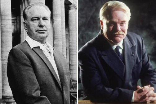 Hubbard in real life (left). As presented in the movie, “The Master” (right).