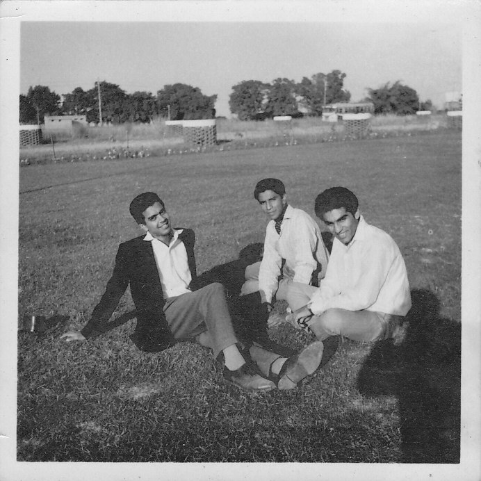 Here I am with my room mate, Ashok Dhawan, on the right, and dorm neighbor, Sushil Handa in the middle. This was one of the moments of relaxation from studies and antics. My room number was 113 in the first year and 213 in the subsequent years. Handa’s room number was 111 and 211 respectively. It is amazing that such small details still exist in the memory.