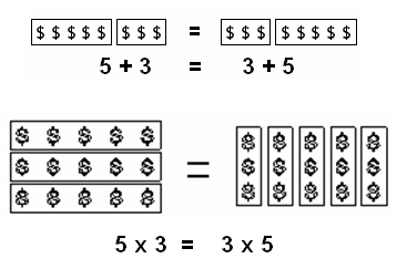 Note that 0 (zero) is the neutral element for addition. The operation of plus appears for 5 when 0 is placed in front of it. It does not change the meaning. The commutative property is applied by rearranging the number with its operation. We note that plus for addition is also omitted when 0 is omitted.