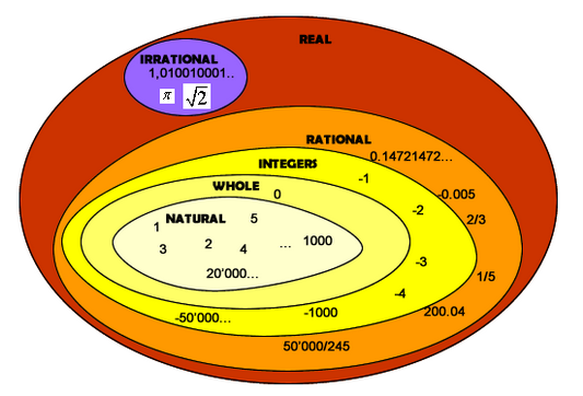 All the above numbers together make up the set of Real Numbers. The squares of real numbers are always positive and never negative. The square roots of negative numbers are represented by Imaginary numbers.