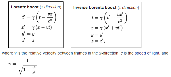Application of mathematics then leads Einstein to the same relationships that Lorenz had come up with earlier with a different model but with the constant speed of light.
