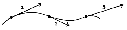 Does this new concept of velocity satisfy the requirement formulated for all generalizations? That is: does it reduce to the familiar concept if the curve becomes a straight line? Obviously it does. The tangent to a straight line is the line itself. The velocity vector lies in the line of the motion, just as in the case of the moving cart or the rolling spheres.