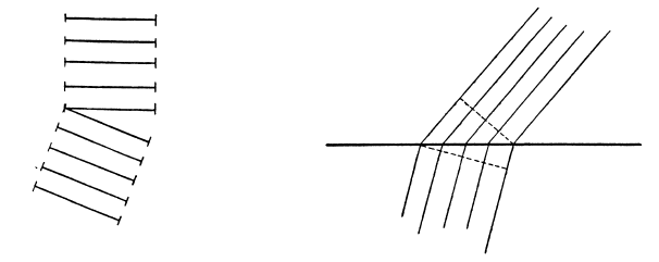 It still remains to be shown how the wave theory explains the refraction of light and the variety of colours. The corpuscular theory is capable of this, as we know. We shall begin with refraction, but it will be useful to consider first an example having nothing to do with optics.