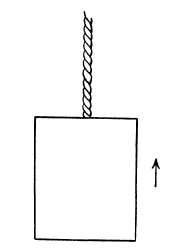 Now for a somewhat different idealized experiment. There is, let us assume, an inertial c.s., in which the law of inertia is valid. We have already described what happens in a lift resting in such an inertial c.s. But we now change our picture. Someone outside has fastened a rope to the lift and is pulling, with a constant force, in the direction indicated in our drawing. It is immaterial how this is done. Since the laws of mechanics are valid in this c.s., the whole lift moves with a constant acceleration in the direction of the motion. Again we shall listen to the explanation of phenomena going on in the lift and given by both the outside and inside observers.