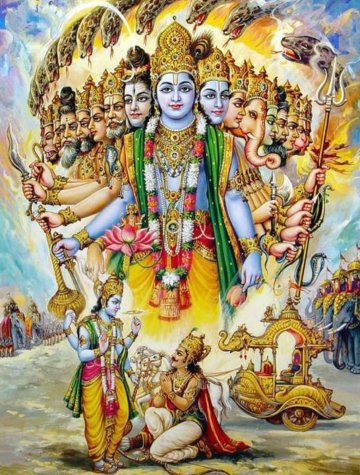 Arjuna realizes the nature of the Universe and Time. No wonder the universe is awesome and praiseworthy at the same time. How can it be otherwise! The Unknowable transcends both being and non-being. It is the basis of everything. This view of ultimate reality is beyond any other experience. It makes everything else appear so trivial. This ultimate reality stands supreme. But Maya is so enchanting.
