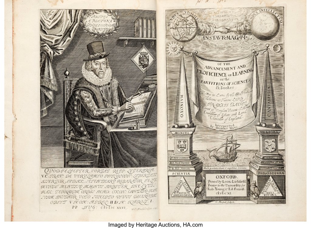 So Bacon, like Plato and us all, exalted his hobby, and offered it as the salvation of man. But he recognized, much more clearly than Plato (and the distinction announces the modern age), the necessity of specialist science, and of soldiers and armies of specialist research. No one mind, not even Bacon’s, could cover the whole field, though he should look from Olympus’ top itself. He knew he needed help, and keenly felt his loneliness in the mountain-air of his unaided enterprise. “What comrades have you in your work?” he asks a friend. “As for me, I am in the completest solitude.” He dreams of scientists coordinated in specialization by constant communion and cooperation, and by some great organization holding them together to a goal. “Consider what may be expected from men abounding in leisure, and from association of labors, and from successions of ages; the rather because it is not a way over which only one man can pass at a time (as is the case with that of reasoning), but within which the labors and industries of men (especially as regards the collecting of experience) may with the best effort be collected and distributed, and then combined. For then only will men begin to know their strength when, instead of great numbers doing all the same things, one shall take charge of one thing, and another of another.” Science, which is the organization of knowledge, must itself be organized.