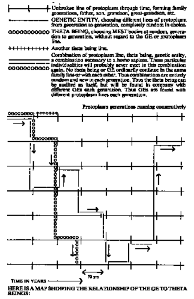 It should not be overlooked that on this GE line one finds what the uninitiated call “past lives”. This continuous living on the part of the somatic mind does not end with the ape. It continues right on through to present time. The GE contains enormous amounts of data about recent times and past times.