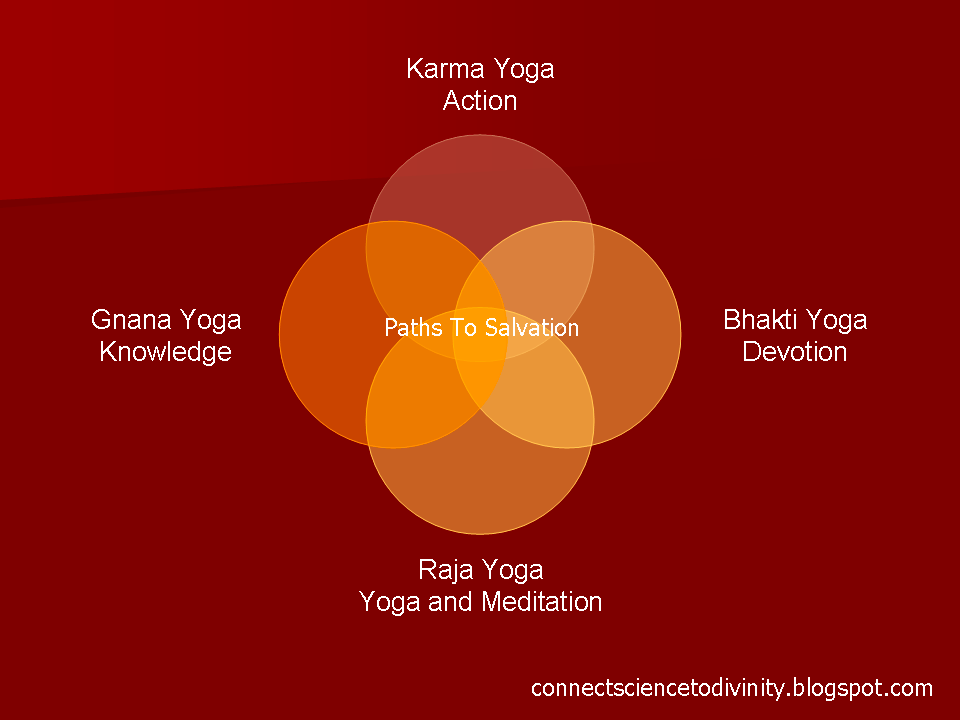 The goal of religion is to actualize the human potential. This goal comes under the heading of Yoga in Hinduism. Yoga provides multiple paths to this common destination, each for a basic spiritual personality type, which are: reflective, emotional, active and experimentalist.