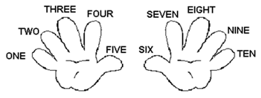 Mathematics starts with Arithmetic, and Arithmetic starts with counting. We learn to count on our fingers as follows.