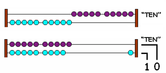 “When all beads are counted to the right on a wire, they are replaced by counting one bead to the right on the next wire.”