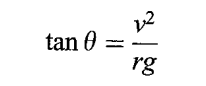 The banking equation gives the general relation among (the banking angle), v (the velocity) and r (the radius of the curved path) that must hold in order to go around the curve, without the need for any frictional force. Note that the mass of vehicle does not enter the equation: