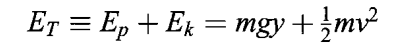 The sum of the potential and kinetic energies at any point is called the total mechanical energy (ET) at that point.