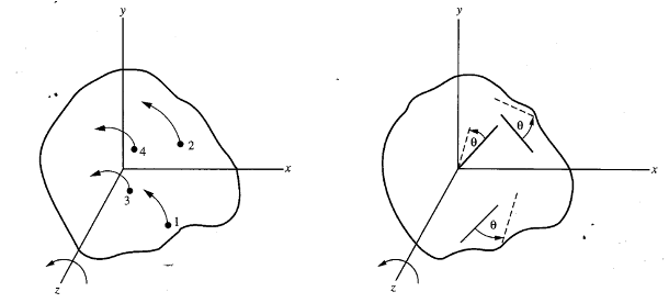 In the following sketch, a body in x-y plane is rotating around the z-axis. The orientation of the rigid body can be completely specified by giving the orientation angle of a single chosen line segment etched in the body.