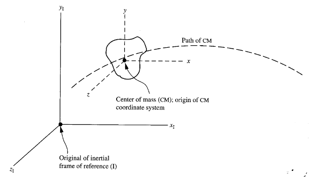 The CM Frame is a coordinate system whose origin is fixed at the CM (Center of Mass) of the object. The CM Frame moves with the object, but its axes remain parallel to the axes of a coordinate system fixed in an inertial frame.