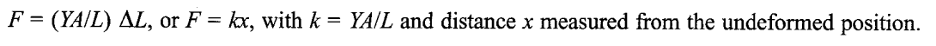For a rod of definite cross section (A) and length (L), the applied force (F) is proportional to the elongation ( L), and can therefore be expressed as F = kx, where k is the force constant of the system.