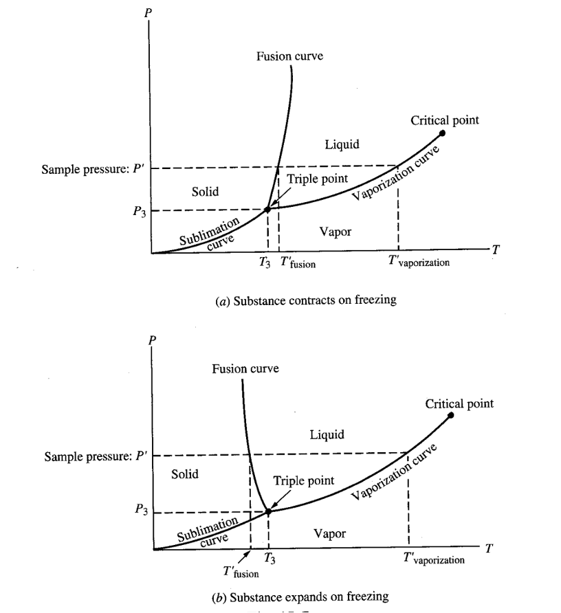 The P-T diagram keeps track of phase changes. For a pure substance the diagram will resemble the following.