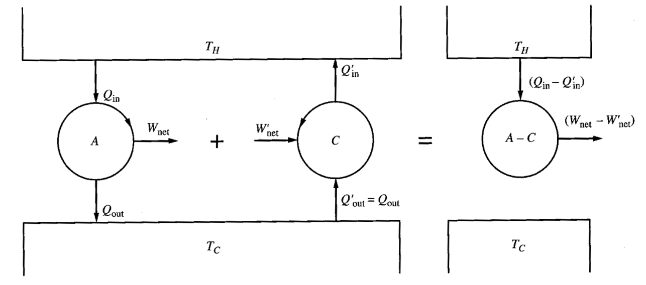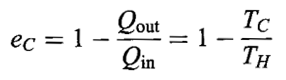 The second law implies that the most efficient engine operating between two fixed temperature reservoirs is a Carnot engine. The efficiency of a Carnot engine is,