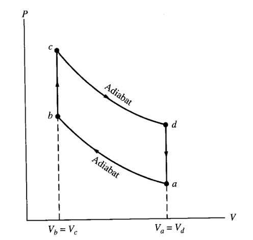 One cylinder of a gasoline engine can be idealized by a quasistatic engine called the Otto cycle, as shown below.