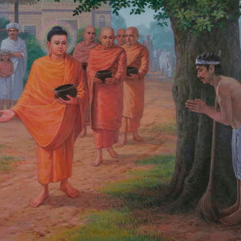Like other spiritual geniuses—one thinks of Jesus spotting Zacchaeus in a tree—the Buddha was gifted with preternatural insight into character. Able to size up, almost at sight, the people who approached him, he seemed never to be taken in by fraud and front but would move at once to what was authentic and genuine. One of the most beautiful instances of this was his encounter with Sunita the flower-scavenger, a man so low in the social scale that the only employment he could find was picking over discarded bouquets to find an occasional blossom that might be bartered to still his hunger. When the Buddha arrived one day at the place where he was sorting through refuse, Sunita’s heart was filled with awe and joy. Finding no place to hide—for he was an outcaste—he stood as if stuck to the wall, saluting with clasped hands. The Buddha “marked the conditions of Arahatship [sainthood] in the heart of Sunita, shining like a lamp within a jar,” and drew near, saying, “Sunita, what to you is this wretched mode of living? Can you endure to leave the world?” Sunita, “experiencing the rapture of one who has been sprinkled with ambrosia, said, ‘If such as I may become a monk of yours, may the Exalted One suffer me to come forth!’” He became a renowned member of the order.
