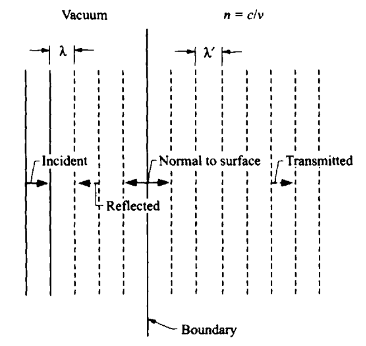 It is important to note, as can be seen from the geometry in the figure, that the angle of incidence, reflection and refraction also represent the angles that the wave fronts of the incident, reflected and refracted waves respectively make with the surface.