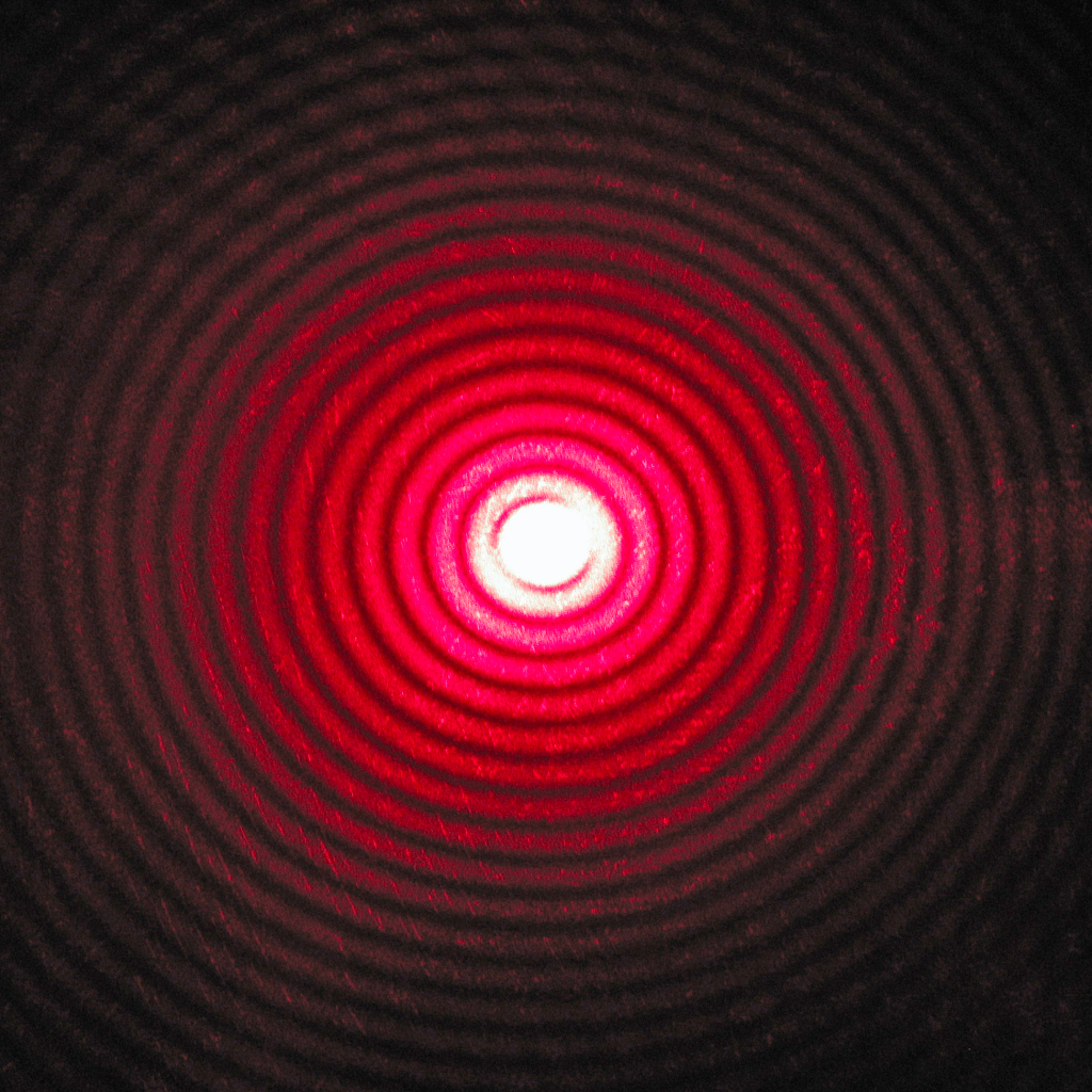 The circles seen are called Newton’s rings. This technique is used as standard procedure to test and adjust the smoothness and symmetry of spherical glass surfaces.