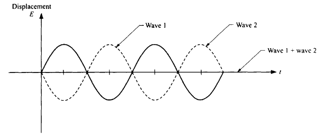 If two of the components are of the same frequency and phase, the wave amplitudes are reinforced, producing constructive interference.
