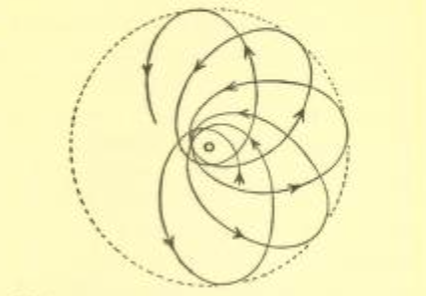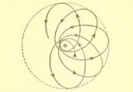 If the old laws follow from the new one when the gravitational forces are weak, the deviations from the Newtonian law of gravitation can be expected only for comparatively strong gravitational forces. Take our solar system. The planets, our earth among them, move along elliptical paths around the sun. Mercury is the planet nearest the sun. The attraction between the sun and Mercury is stronger than that between the sun and any other planet, since the distance is smaller. If there is any hope of finding a deviation from Newton’s law, the greatest chance is in the case of Mercury. It follows, from classical theory, that the path described by Mercury is of the same kind as that of any other planet except that it is nearer the sun. According to the general relativity theory, the motion should be slightly different. Not only should Mercury travel around the sun, but the ellipse which it describes should rotate very slowly, relative to the CS connected with the sun. This rotation of the ellipse expresses the new effect of the general relativity theory. The new theory predicts the magnitude of this effect. Mercury’s ellipse would perform a complete rotation in three million years! We see how small the effect is, and how hopeless it would be to seek it in the case of planets farther removed from the sun.